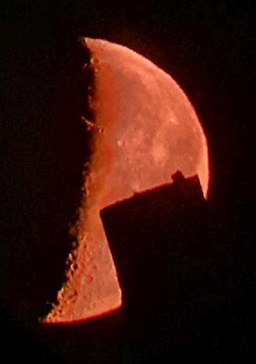 | Obr. 3: Moravané byli z akce celí na větvi. (Autor: Pepa K.) | Obr. 4: Východ Měsíce za troseckou věží Panna. (Autor: Pepa K.) |